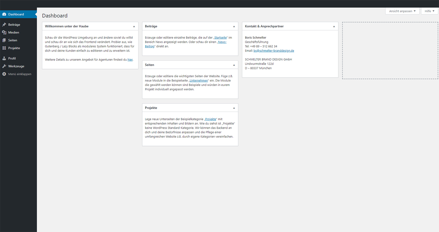 Außerdem ist nun der richtige Zeitpunkt uns den gesamten Content (Bild und Text) zu übersenden, den wir dann vollständig einpflegen. (Solltet ihr das übernehmen wollen, kein Problem. Dann bekommt ihr einen WordPress Zugang).